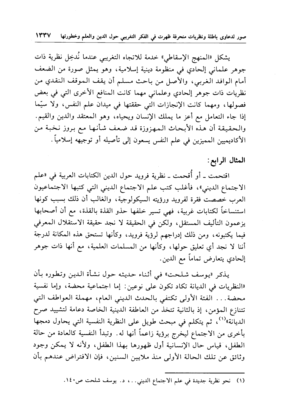 (¬1) نحو نظرية جديدة في علم الاجتماع الديني .. ، د. يوسف شلحت ص 140.