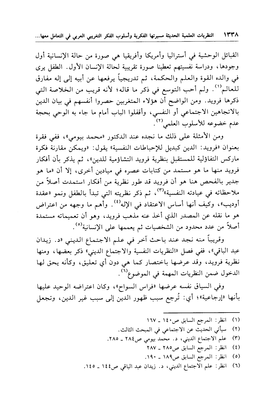 (¬6) انظر: علم الاجتماع الديني، د. زيدان عبد الباقي ص 144 - 145.