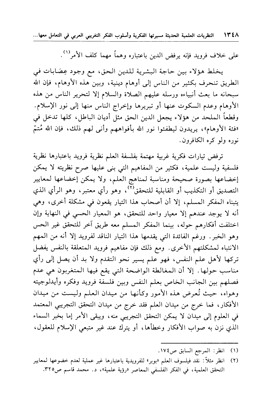 (¬2) انظر مثلًا: نقد فيلسوف العلم "بوبر" للفرويدية باعتبارها غير عملية لعدم خضوعها لمعايير التحقق العلمية، في الفكر الفلسفي المعاصر "رؤية علمية"، د. محمد قاسم ص 325.