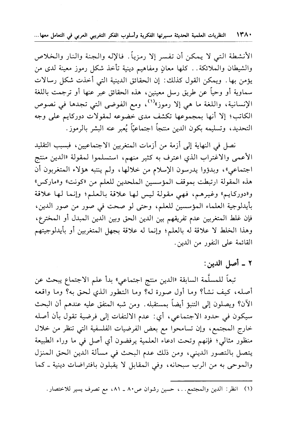 (¬1) انظر: الدين والمجتمع .. ، حسين رشوان ص 80 - 81، مع تصرف يسير للاختصار.
