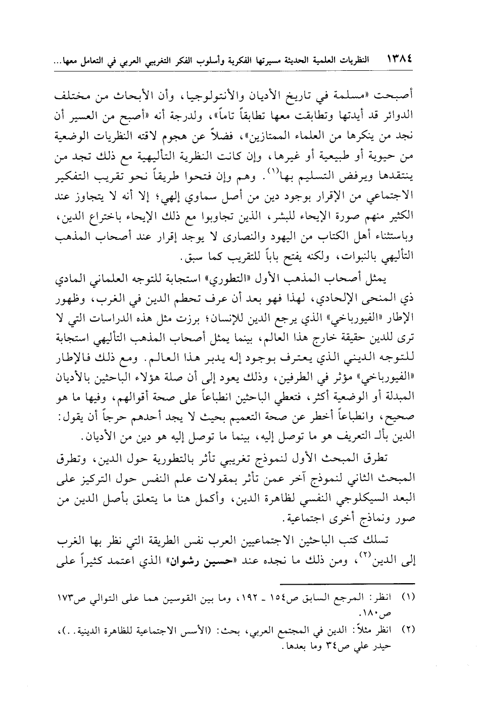 تسلك كتب الباحثين الاجتماعيين العرب نفس الطريقة التي نظر بها الغرب إلى الدين (¬2)، ومن ذلك ما نجده عند "حسين رشوان" الذي اعتمد كثيرًا على