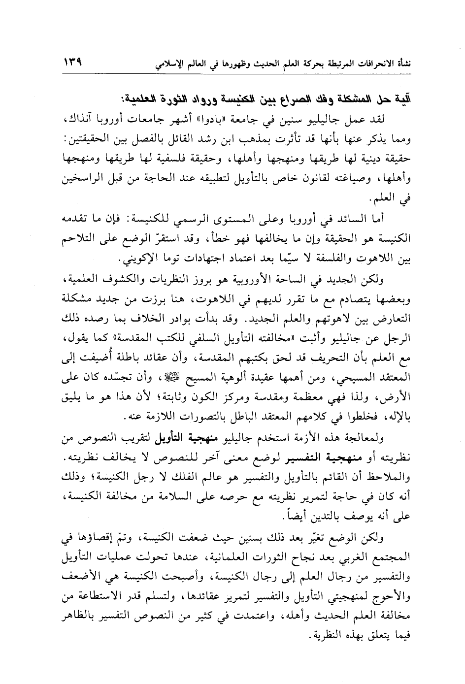 ولكن الجديد في الساحة الأوروبية هو بروز النظريات والكشوف العلمية، وبعضها يتصادم مع ما تقرر لديهم في اللاهوت، هنا برزت من جديد مشكلة التعارض بين لاهوتهم والعلم الجديد. وقد بدأت بوادر الخلاف بما رصده ذلك الرجل عن جاليليو وأثبت "مخالفته التأويل السلفي للكتب المقدسة" كما يقول، مع العلم بأن التحريف قد لحق بكتبهم المقدسة، وأن عقائد باطلة أُضيفت إلى المعتقد المسيحي، ومن أهمها عقيدة ألوهية المسيح - عليه السلام -، وأن تجسّده كان على الأرض، ولذا فهي معظمة ومقدسة ومركز الكون وثابتة؛ لأن هذا هو ما يليق بالإله، فخلطوا في كلامهم المعتقد الباطل بالتصورات اللازمة عنه.