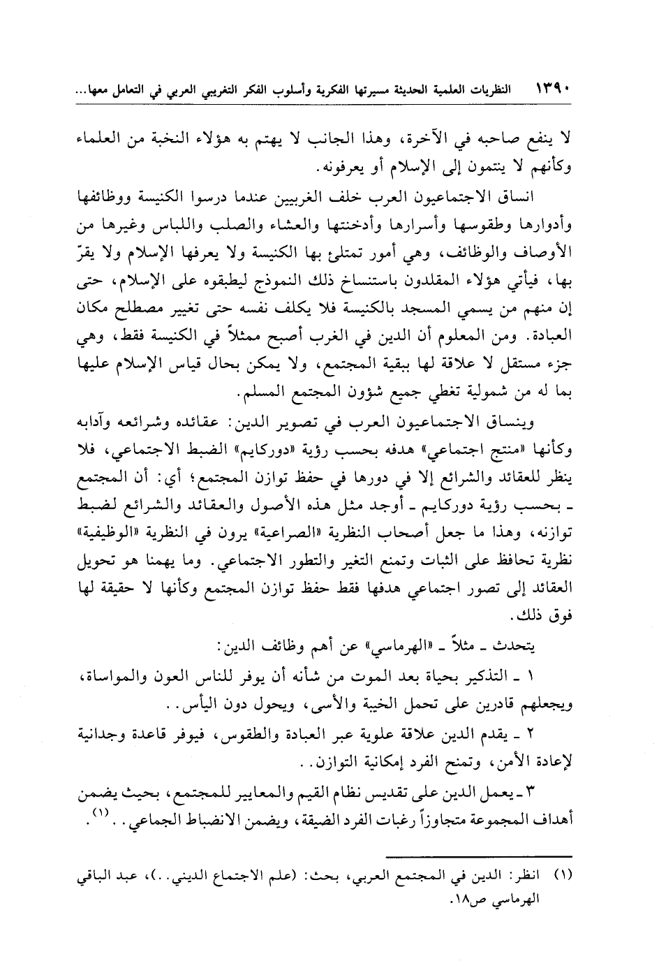 (¬1) انظر: الدين في المجتمع العربي، بحث: (علم الاجتماع الديني ..)، عبد الباقي الهرماسي ص 18.