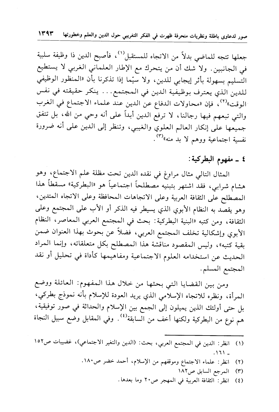 (¬1) انظر: الدين في المجتمع العربي، بحث: (الدين والتغير الاجتماعي)، غضيبات ص 152 - 161.
