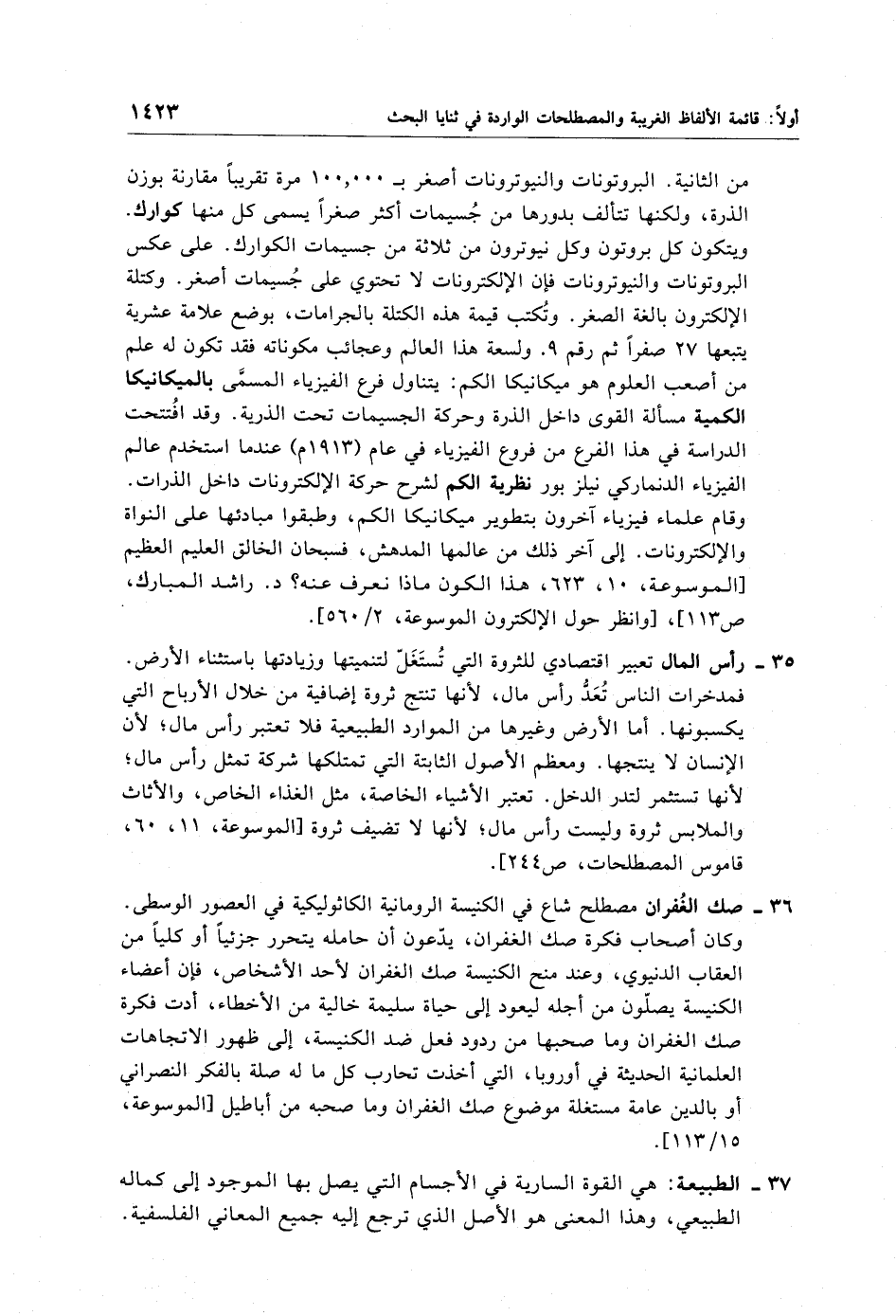37 - الطبيعة: هي القوة السارية في الأجسام التي يصل بها الموجود إلى كماله الطبيعي، وهذا المعنى هو الأصل الذي ترجع إليه جميع المعاني الفلسفية.