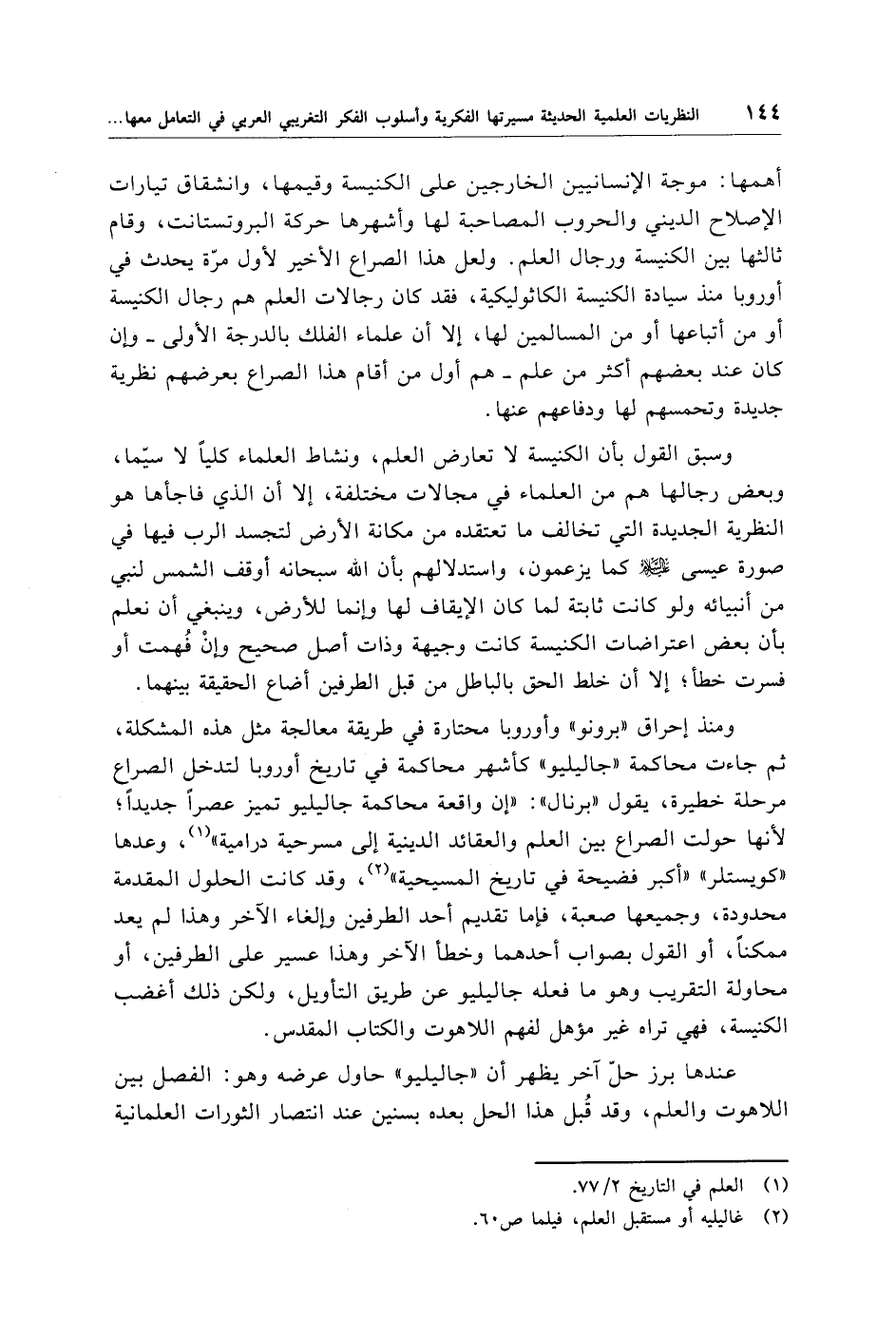 (¬2) غاليليه أو مستقبل العلم، فيلما ص 60.