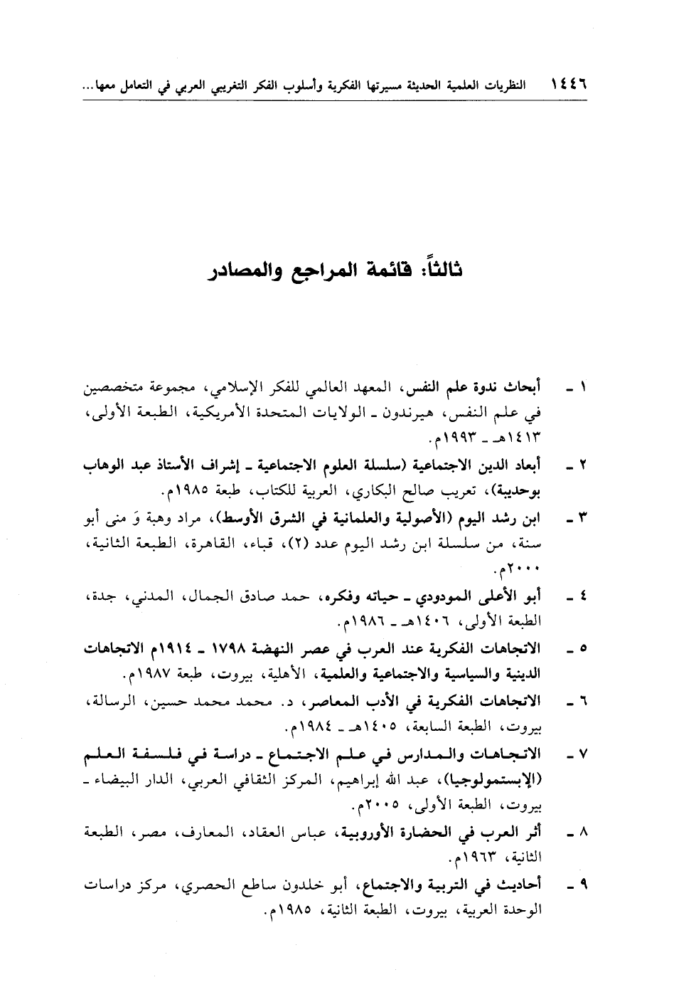 7 - الاتجاهات والمدارس في علم الاجتماع - دراسة في فلسفة العلم (الإبستمولوجيا)، عبد الله إبراهيم، المركز الثقافي العربي، الدار البيضاء -بيروت، الطبعة الأولى، 2005 م.
