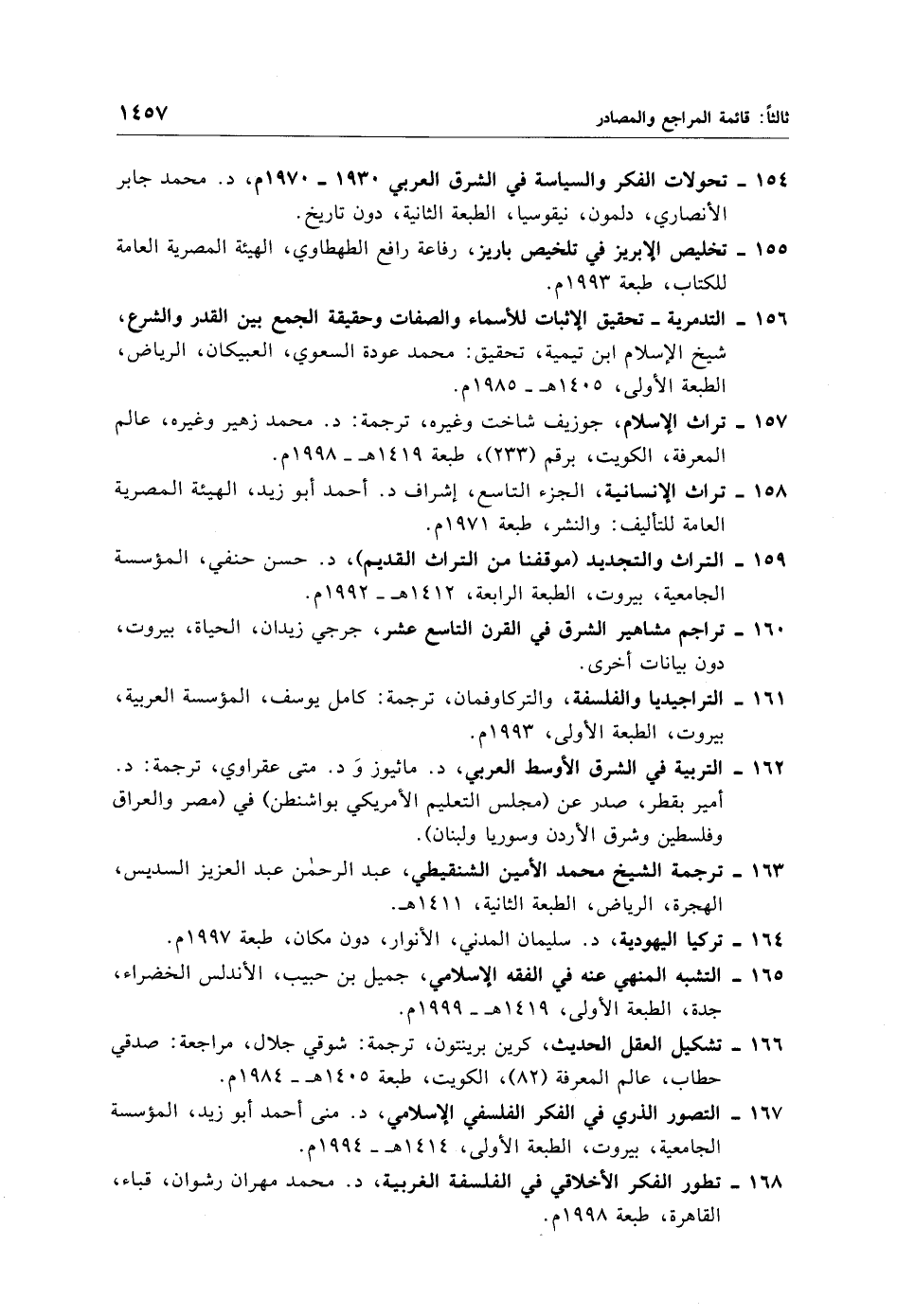 159 - التراث والتجديد (موقفنا من التراث القديم)، د. حسن حنفي، المؤسسة الجامعية، بيروت، الطبعة الرابعة، 1412 هـ - 1992 م.