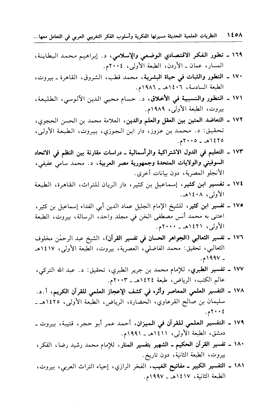 179 - التفسير العلمي للقرآن في الميزان, أحمد عمر أبو حجر، قتيبة، بيروت - دمشق، الطبعة الأولى، 1411 هـ - 1991 م.