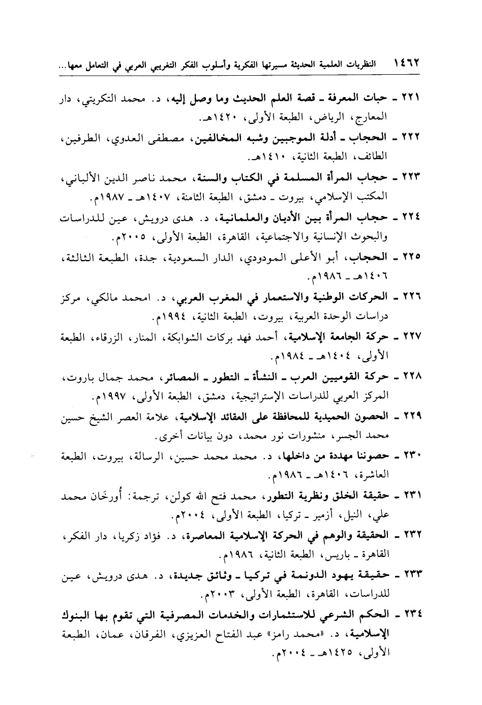 225 - الحجاب، أبو الأعلى المودودي، الدار السعودية، جدة، الطبعة الثالثة، 1406 هـ - 1986 م.