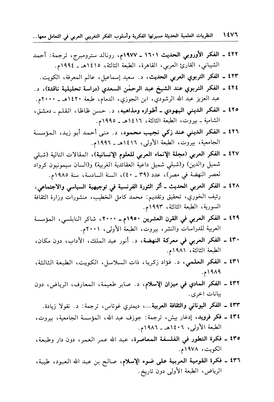 423 - الفكر التربوي العربي الحديث، د. سعيد إسماعيل، عالم المعرفة، الكويت.