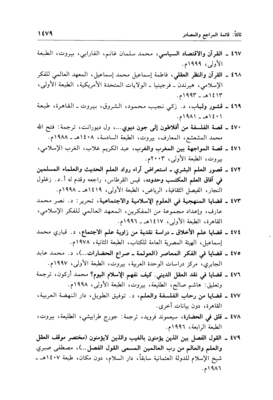 477 - قضايا من رحاب الفلسفة والعلم، د. توفيق الطويل، دار النهضة العربية، القاهرة، دون بيانات أخرى.