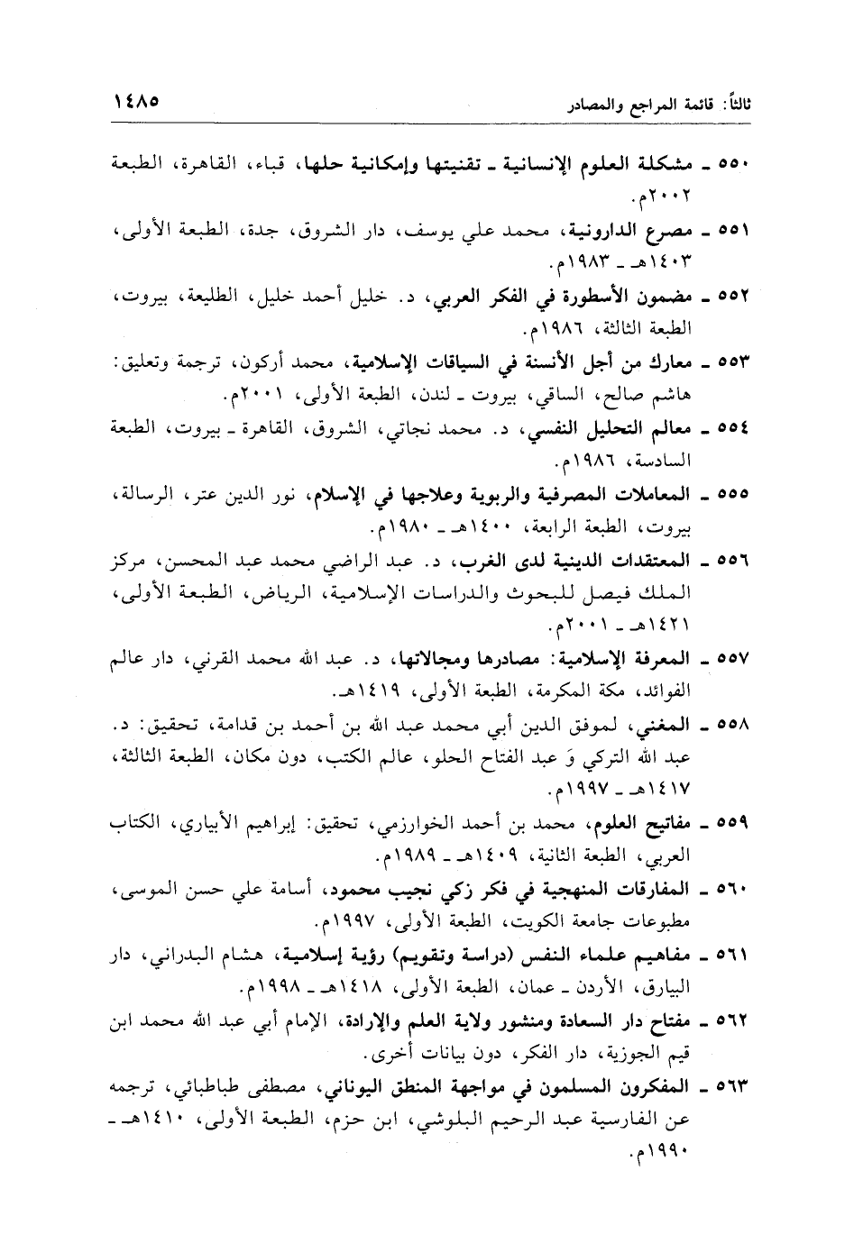 562 - مفتاح دار السعادة ومنشور ولاية العلم والإرادة، الإمام أبي عبد الله محمد ابن قيم الجوزية، دار الفكر، دون بيانات أخرى.