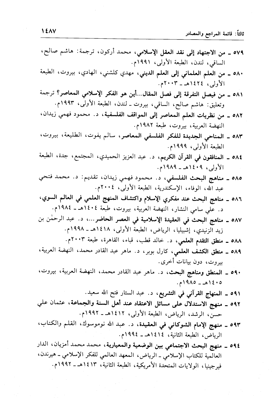 585 - مناهج البحث الفلسفي، د. محمود فهمي زيدان، تقديم: د. محمد فتحي عبد الله، الوفاء، الإسكندرية، الطبعة الأولى، 2004 م.
