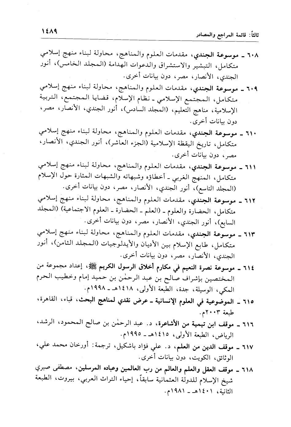 612 - موسوعة الجندي، مقدمات العلوم والمناهج، محاولة لبناء منهج إسلامي متكامل، الحضارة والعلوم - (العلم - الحضارة - العلوم الاجتماعية) (المجلد السابع)، أنور الجندي، الأنصار، مصر، دون بيانات أخرى.
