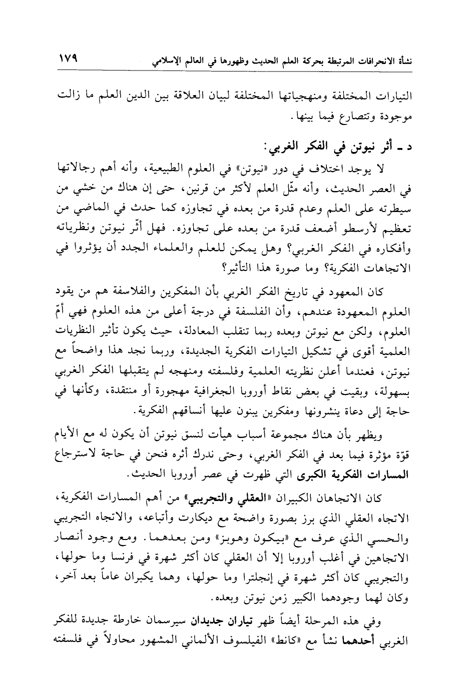 لا يوجد اختلاف في دور "نيوتن" في العلوم الطبيعية، وأنه أهم رجالاتها في العصر الحديث، وأنه مثّل العلم لأكثر من قرنين، حتى إن هناك من خشي من سيطرته على العلم وعدم قدرة من بعده في تجاوزه كما حدث في الماضي من تعظيم لأرسطو أضعف قدرة من بعده على تجاوزه. فهل أثّر نيوتن ونظرياته وأفكاره في الفكر الغربي؟ وهل يمكن للعلم والعلماء الجدد أن يؤثروا في الاتجاهات الفكرية؟ وما صورة هذا التأثير؟