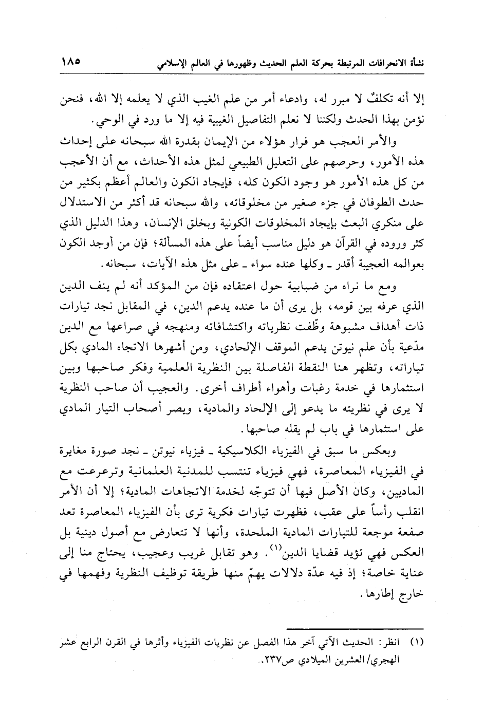 (¬1) انظر: الحديث الآتي آخر هذا الفصل عن نظريات الفيزياء وأثرها في القرن الرابع عشر الهجري/ العشرين الميلادي ص 237.