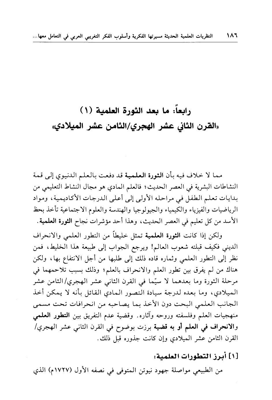 رابعًا: ما بعد الثورة العلمية (1) "القرن الثاني عشر الهجري/ الثامن عشر الميلادي"