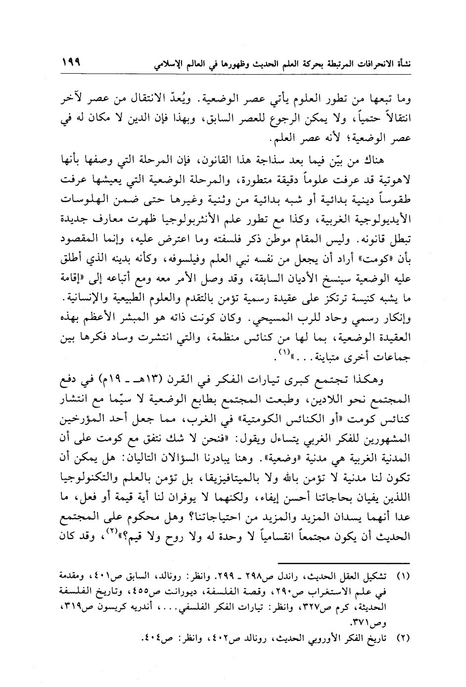 (¬1) تشكيل العقل الحديث، راندل ص 298 - 299. وانظر: رونالد، السابق ص 401، ومقدمة في علم الاستغراب ص 290، وقصة الفلسفة، ديورانت ص 455، وتاريخ الفلسفة الحديثة، كرم ص 327، وانظر: تيارات الفكر الفلسفي. . . .، أندريه كريسون ص 319، وص 371.