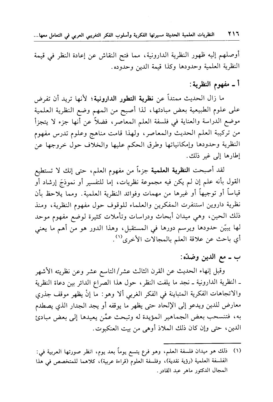كتاب النظريات العلمية الحديثة مسيرتها الفكرية وأسلوب الفكر التغريبي العربي في التعامل معها دراسة نقدية (اسم الجزء: 1)