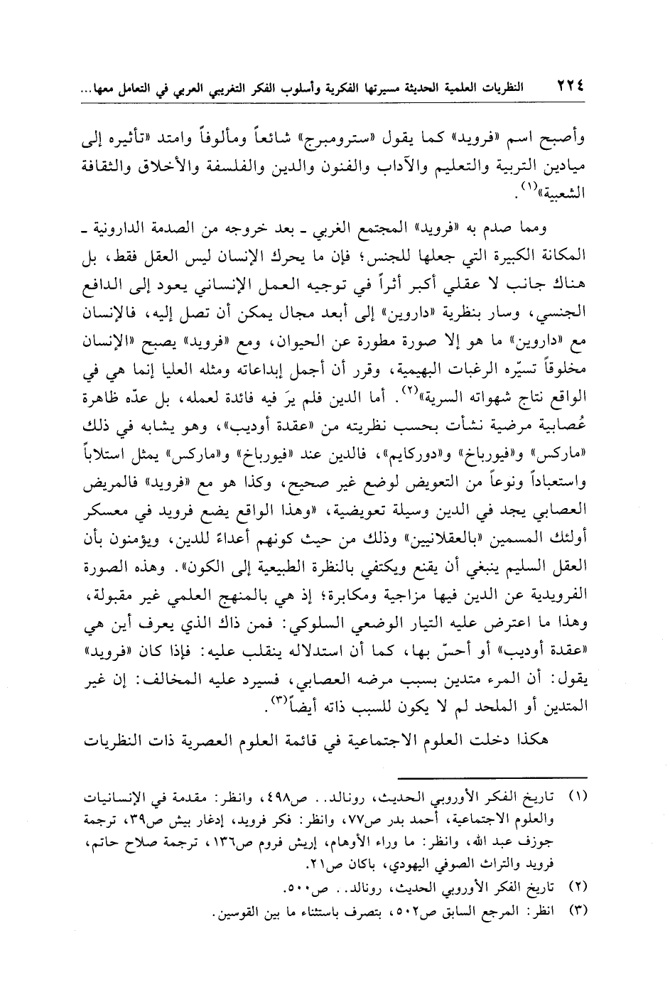 (¬1) تاريخ الفكر الأوروبي الحديث، رونالد. . ص 498، وانظر: مقدمة في الإنسانيات والعلوم الاجتماعية، أحمد بدر ص 77، وانظر: فكر فرويد، إدغار بيش ص 39، ترجمة جوزف عبد الله، وانظر: ما وراء الأوهام، إريش فروم ص 136، ترجمة صلاح حاتم، فرويد والتراث الصوفي اليهودي، باكان ص 21.