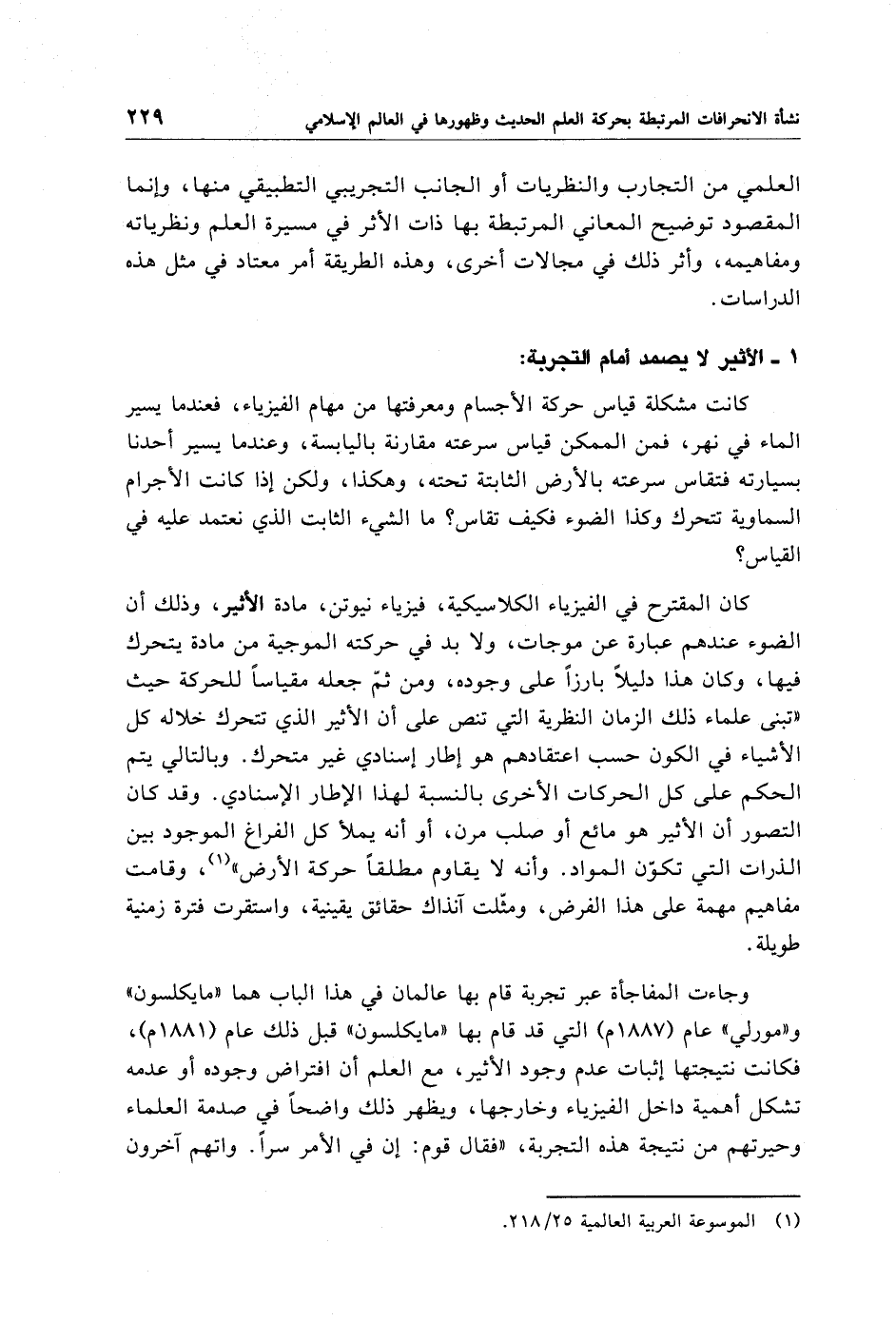 1 - الأثير لا يصمد أمام التجربة: