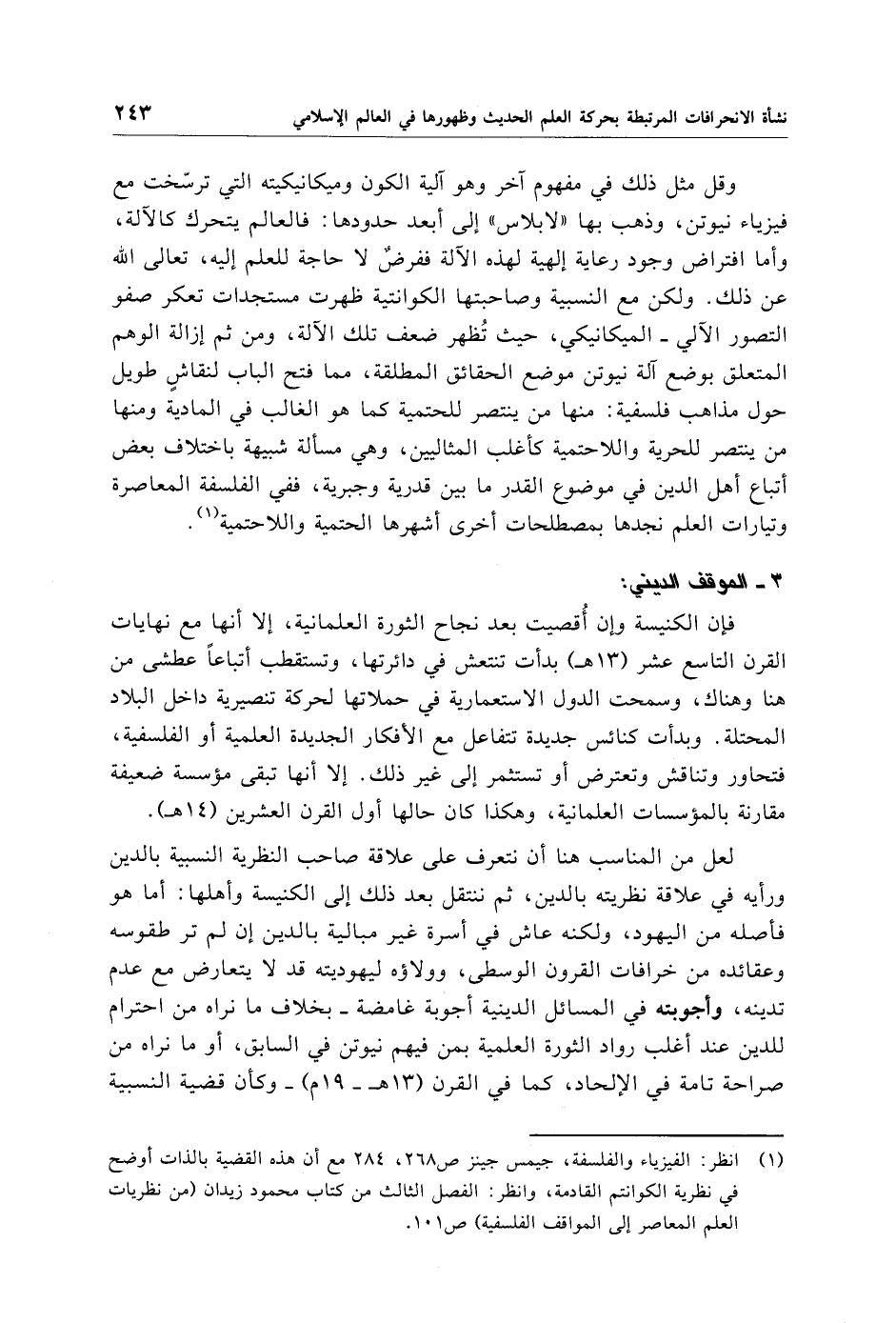 (¬1) انظر: الفيزياء والفلسفة، جيمس جينز ص 268، 284 مع أن هذه القضية بالذات أوضح في نظرية الكوانتم القادمة، وانظر: الفصل الثالث من كتاب محمود زيدان (من نظريات العلم المعاصر إلى المواقف الفلسفية) ص 101.