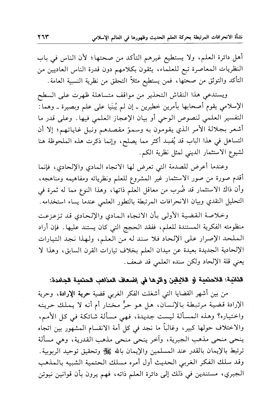 وعندما أعرض للصدمة التي تعرض لها الاتجاه المادي والإلحادي، فإنما أقدم صورة من صور الاستثمار غير المشروع للعلم ونظرياته ومفاهيمه ومناهجه، وأن ذاك الاستثمار قد ضُرب من معاقل العلم ذاتها، وهذا النوع مما له ثمرة في التحليل النقدي وبيان الانحرافات المرتبطة بالتطور العلمي عندما يساء استخدامه.
