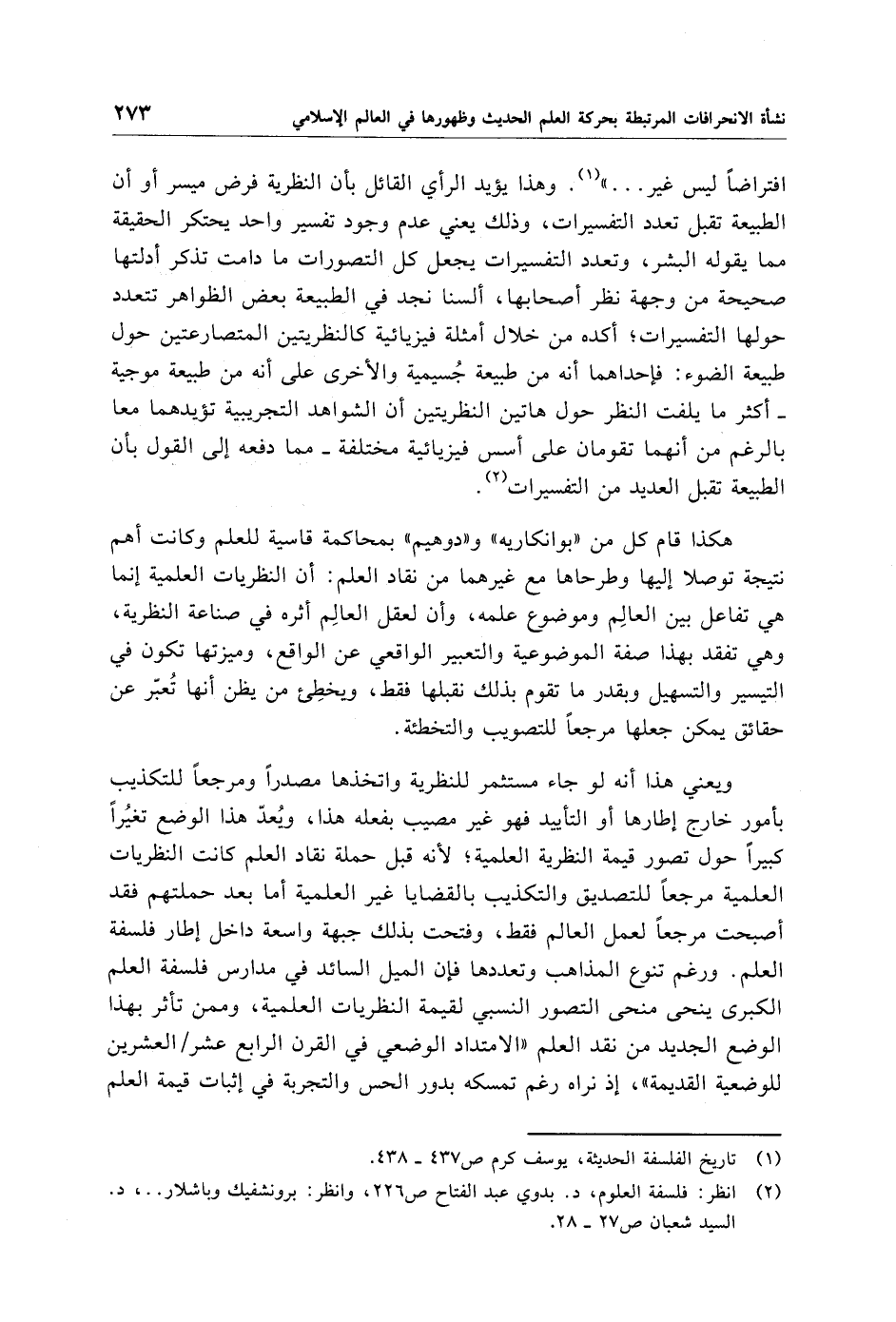 (¬2) انظر: فلسفة العلوم، د. بدوي عبد الفتاح ص 226، وانظر: برونشفيك وباشلار. .، د. السيد شعبان ص 27 - 28.