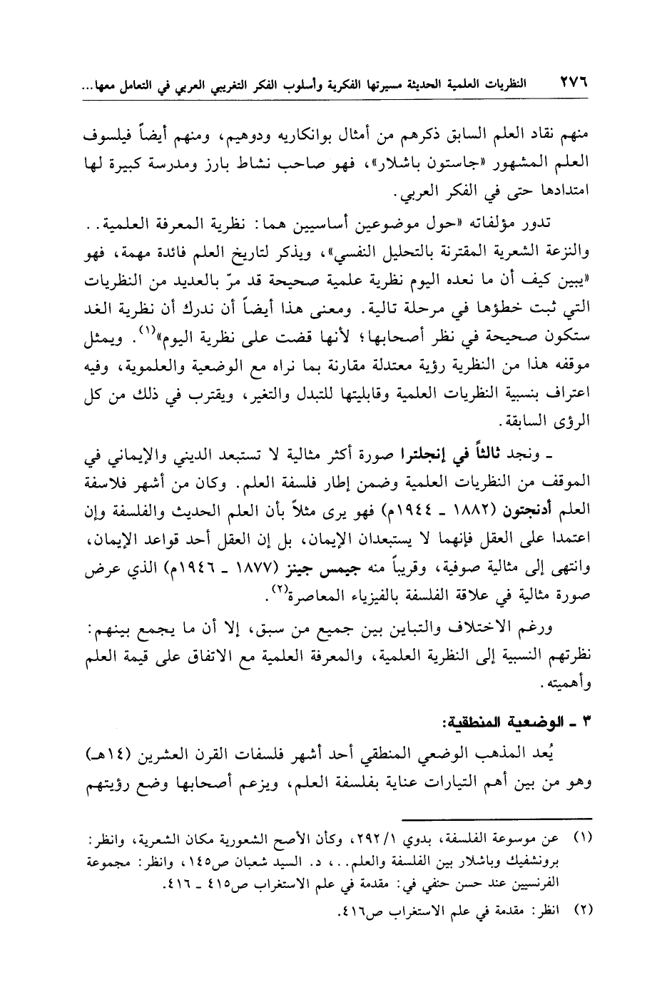 (¬1) عن موسوعة الفلسفة، بدوي 1/ 292، وكأن الأصح الشعورية مكان الشعرية، وانظر: برونشفيك وباشلار بين الفلسفة والعلم. .، د. السيد شعبان ص 145، وانظر: مجموعة الفرنسيين عند حسن حنفي في: مقدمة في علم الاستغراب ص 415 - 416.