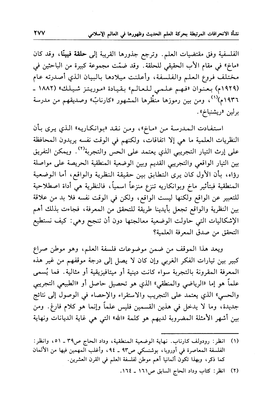 (¬1) انظر: رودولف كارناب. نهاية الوضعية المنطقية، وداد الحاج ص 39 - 51، وانظر: الفلسفة المعاصرة في أوروبا، بوشنسكي ص 93 - 94، وأغلب المهمين فيها من الألمان كما ذكر، وبهذا تكون ألمانيا أهم موطن لفلسفة العلم في القرن العشرين.