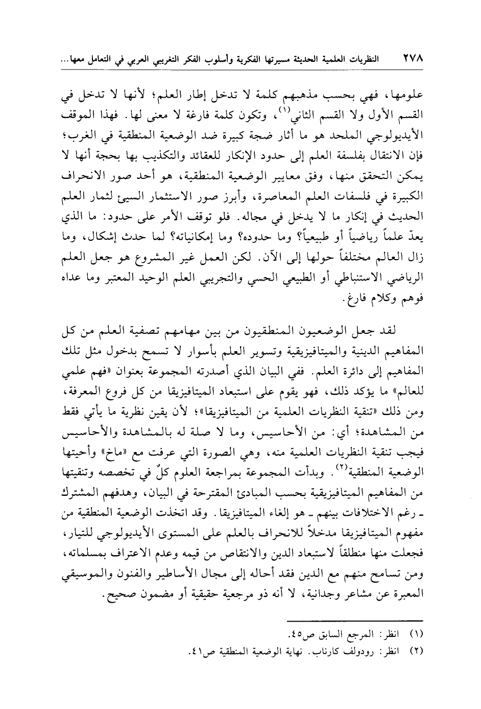 (¬2) انظر: رودولف كارناب. نهاية الوضعية المنطقية ص 41.
