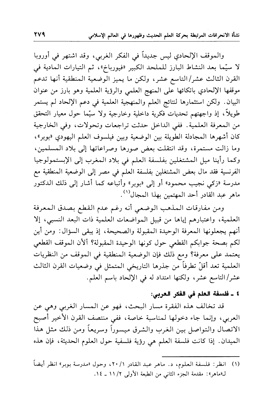 (¬1) انظر: فلسفة العلوم، د. ماهر عبد القادر 1/ 20، وحول "مدرسة بوبر" انظر أيضًا لـ"ماهر": مقدمة الجزء الثاني من الطبعة الأولى 2/ 11 - 14.