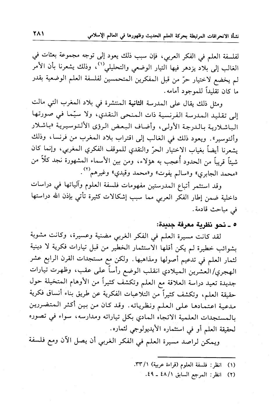 (¬1) انظر: فلسفة العلوم (قراءة عربية) 1/ 33.