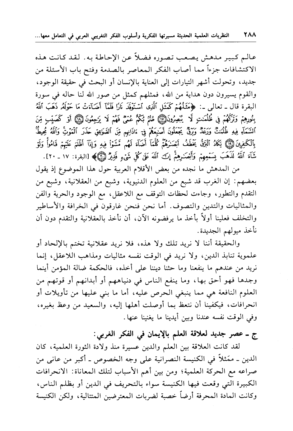 ج - عصر جديد لعلاقة العلم بالايمان في الفكر الغربي: