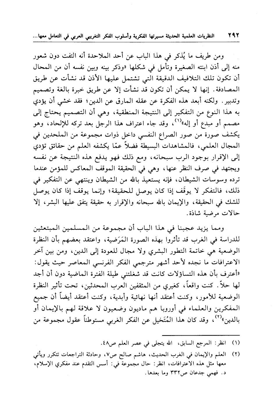 (¬2) العلم والإيمان في الغرب الحديث، هاشم صالح ص 7، وحادثة التراجعات تتكرر ويأتي معها مثل هذه الاعترافات، انظر: حال مجموعة في: أسس التقدم عند مفكري الإسلام، د. فهمي جدعان ص 332 وما بعدها.