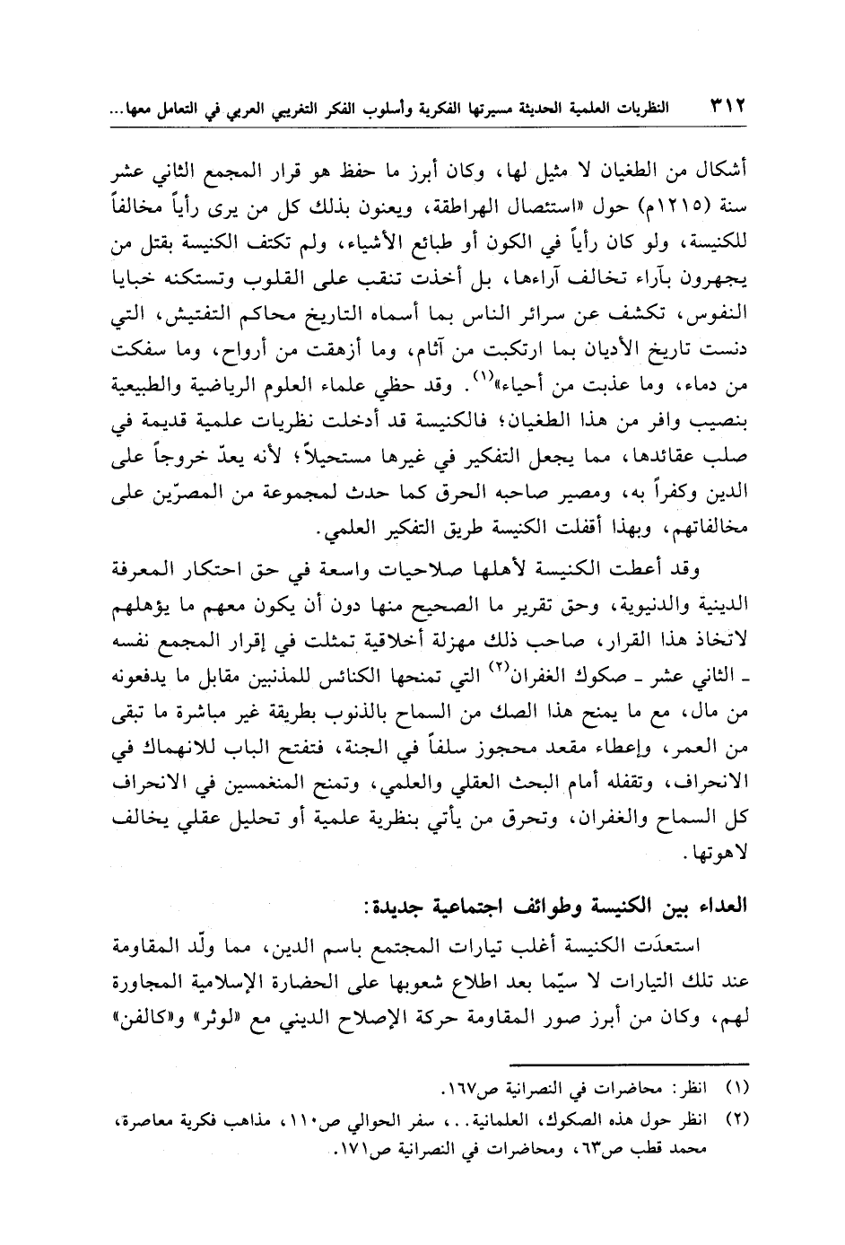 (¬2) انظر حول هذه الصكوك، العلمانية. .، سفر الحوالي ص 110، مذاهب فكرية معاصرة، محمَّد قطب ص 63، ومحاضرات في النصرانية ص 171.