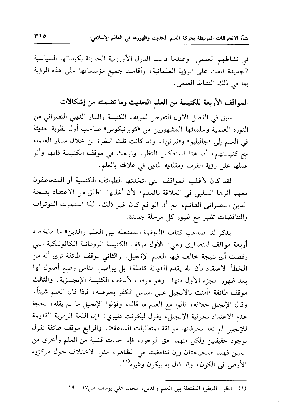 (¬1) انظر: الجفوة المفتعلة بين العلم والدين، محمد علي يوسف ص 17 - 19.