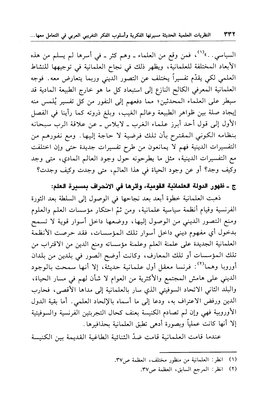 (¬1) انظر: العلمانية من منظور مختلف، العظمة ص 37.