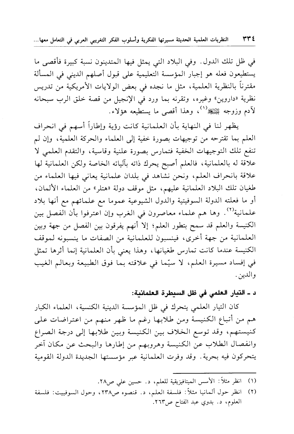 د - التيار العلمي في ظل السيطرة العلمانية: