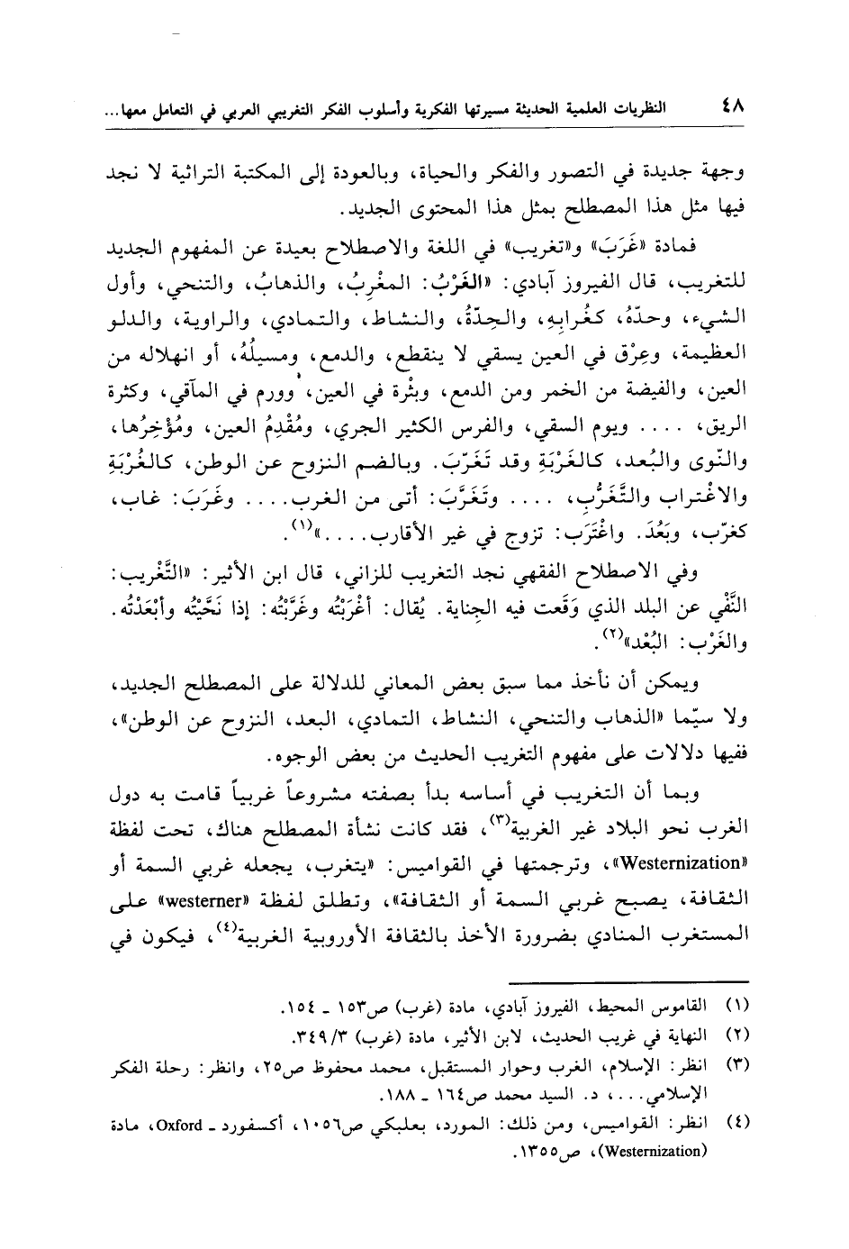 (¬4) انظر: القواميس، ومن ذلك: المورد، بعلبكي ص 1056، أكسفورد - Oxford، مادة (westernization)، ص 1355.