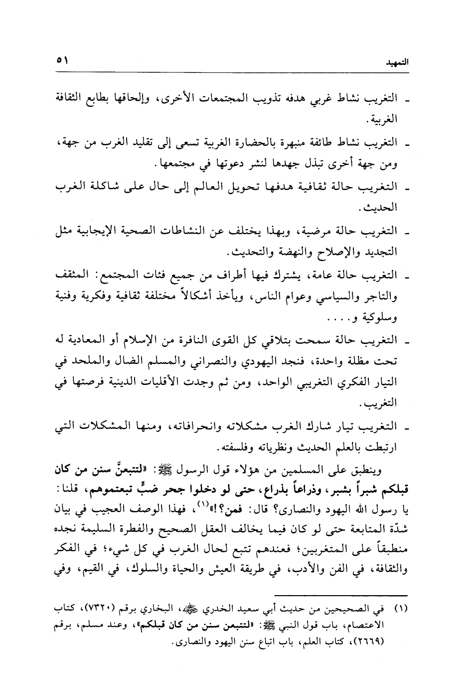 (¬1) في الصحيحين من حديث أبي سعيد الخدري - رضي الله عنه -، البخاري برقم (7320)، كتاب الاعتصام، باب قول النبي - صلى الله عليه وسلم -: "لتتبعن سنن من كان قبلكم"، وعند مسلم، برقم (2669)، كتاب العلم، باب اتباع سنن اليهود والنصارى.