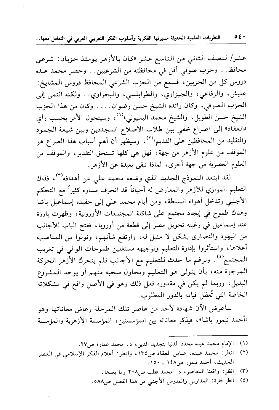 (¬2) انظر: محمَّد عبده، عباس العقاد ص 134، وانظر: أعلام الفكر الإِسلامي في العصر الحديث، أحمد تيمور ص 148 - 150.