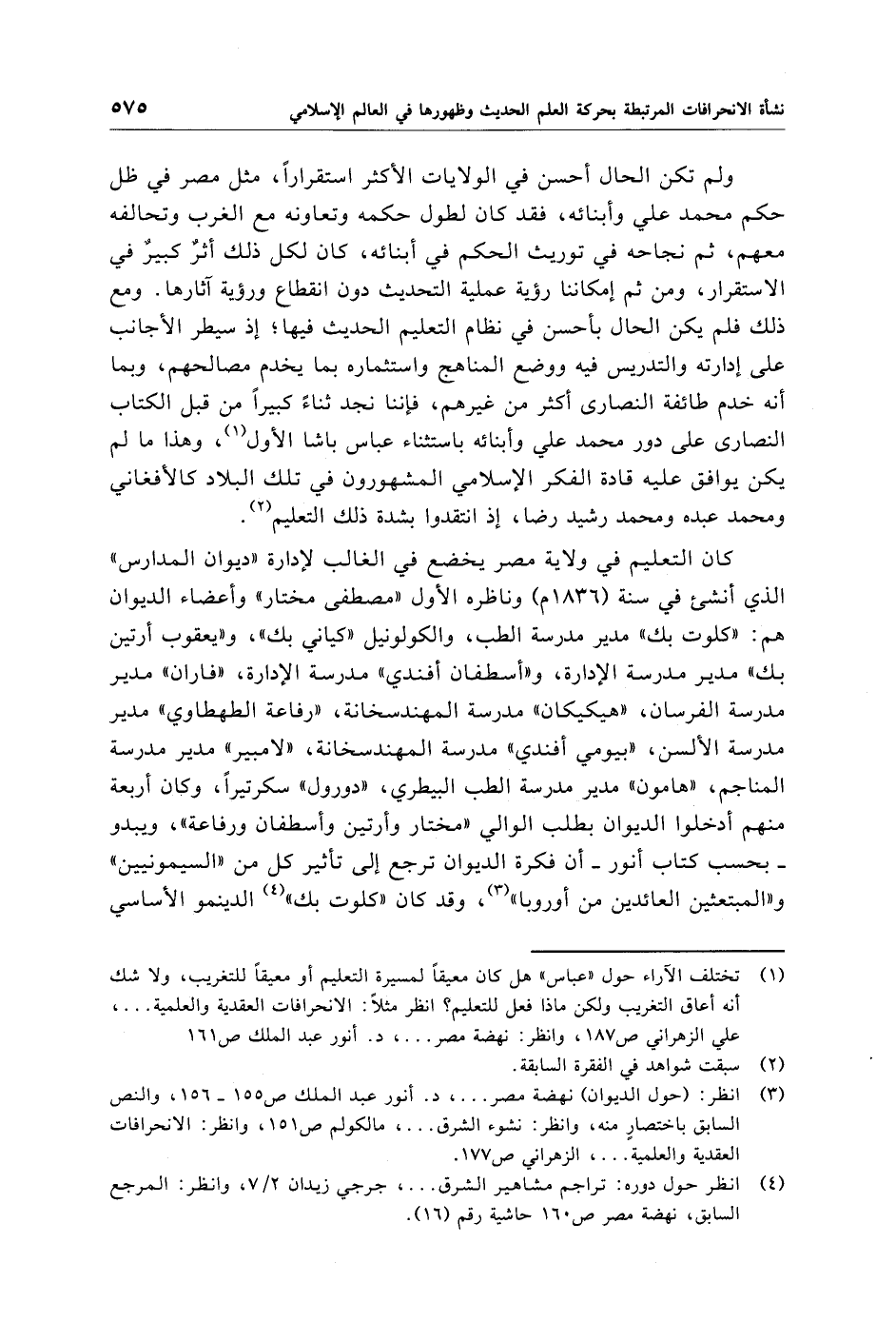 (¬3) انظر: (حول الديوان) نهضة مصر. . . .، د. أنور عبد الملك ص 155 - 156، والنص السابق باختصارٍ منه، وانظر: نشوء الشرق. . . .، مالكولم ص 151، وانظر: الانحرافات العقدية والعلمية. . . .، الزهراني ص 177.