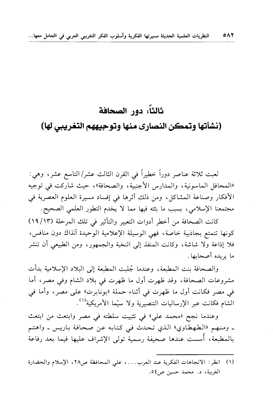 (¬1) انظر: الاتجاهات الفكرية عند العرب. . . .، علي المحافظة ص 28، الإسلام والحضارة الغربية، د. محمد حسين ص 54.