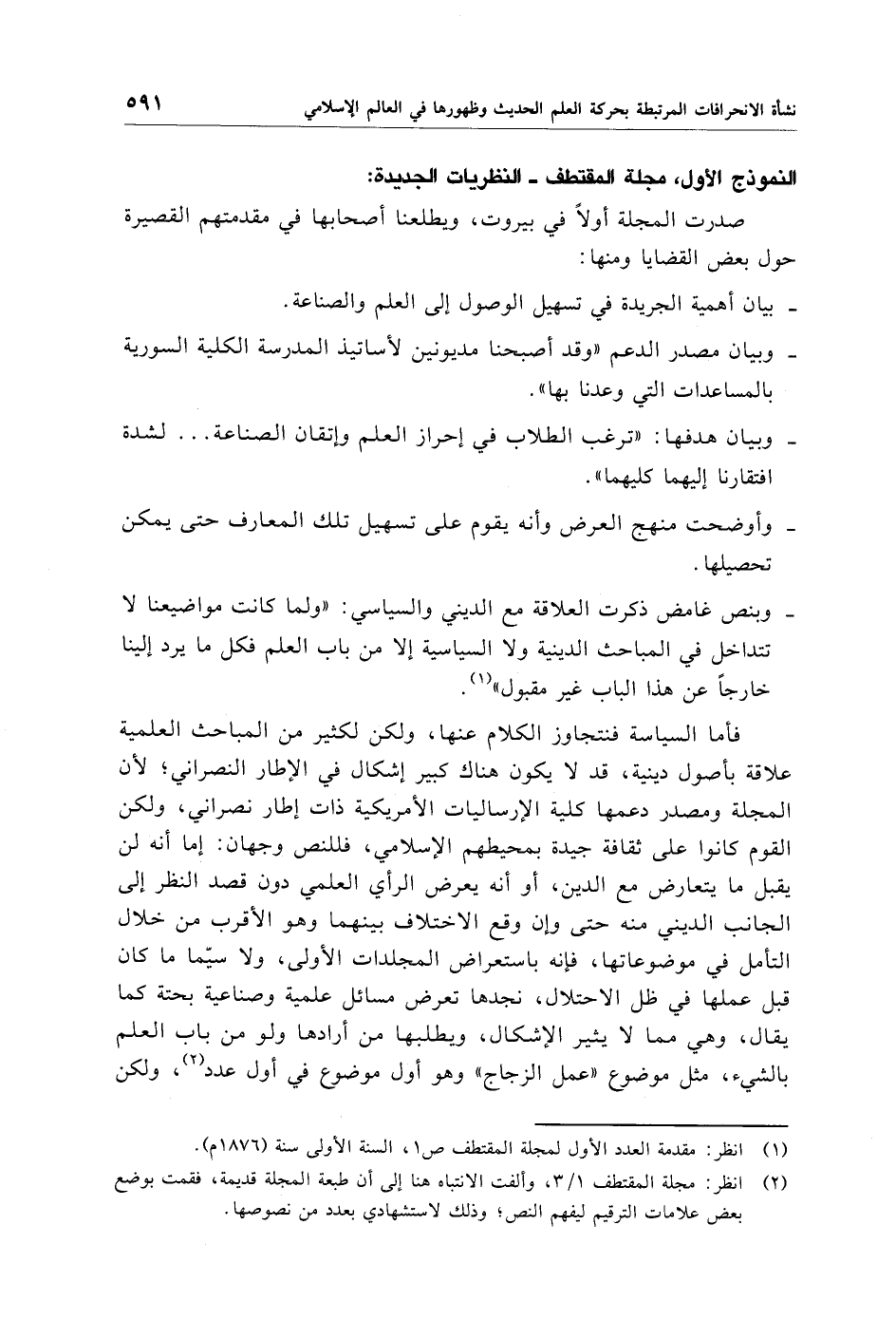 (¬2) انظر: مجلة المقتطف 1/ 3، وألفت الانتباه هنا إلى أن طبعة المجلة قديمة، فقمت بوضع بعض علامات الترقيم ليفهم النص؛ وذلك لاستشهادي بعدد من نصوصها.