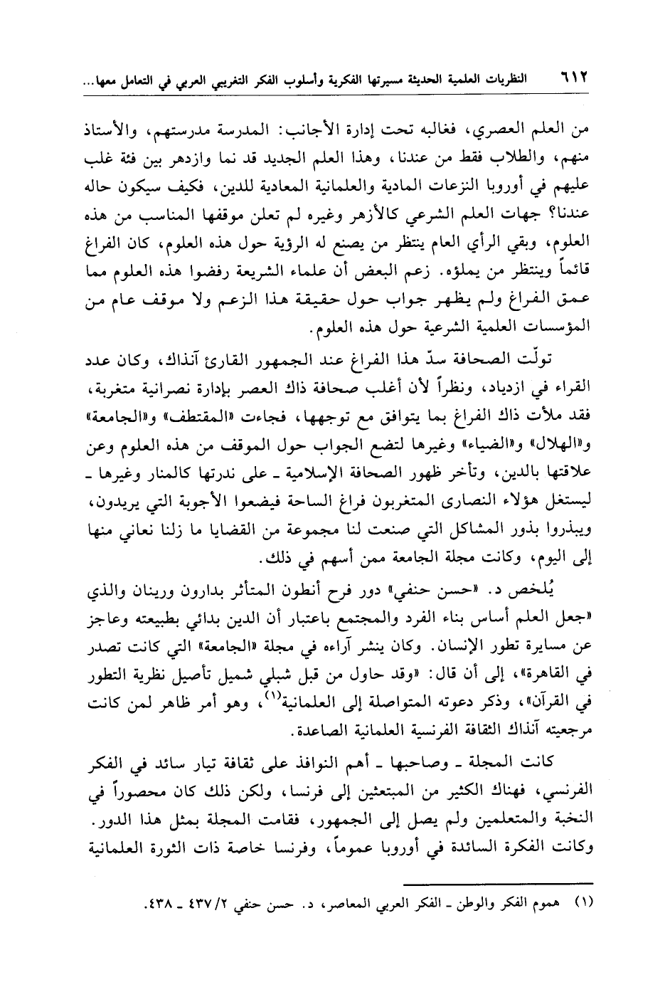 (¬1) هموم الفكر والوطن -الفكر العربي المعاصر، د. حسن حنفي 2/ 437 - 438.