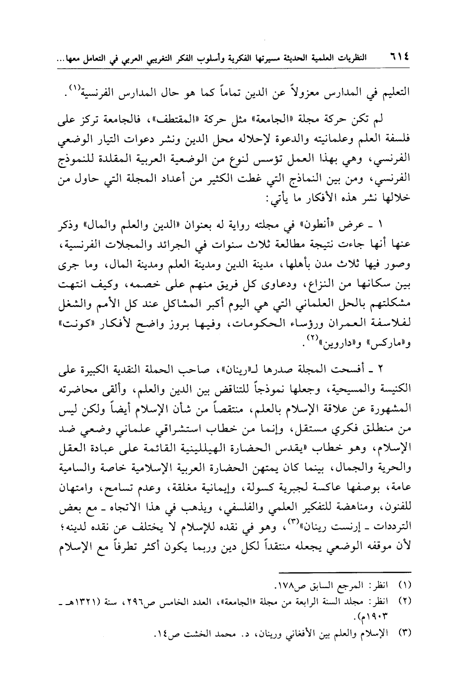 (¬3) الإِسلام والعلم بين الأفغاني ورينان، د. محمَّد الخشت ص 14.
