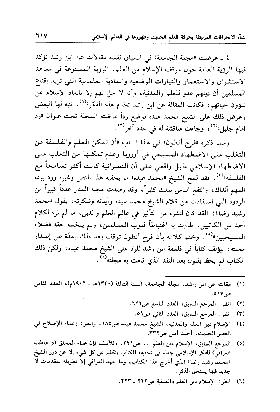 (¬5) المرجع السابق، الإِسلام دين العلم. . . . ص 221، وللأسف فإن عداء المحقق (د. عاطف العراقي) للفكر الإِسلامي جعله في تحقيقه للكتاب يتكلم عن كل شيء إلا عن دور الشيخ "محمَّد رشيد رضا" الذي أخرج هذا الكتاب، وما جهد العراقي إلا تطويله بمقدمات لا جديد فيها يستحق الذكر.