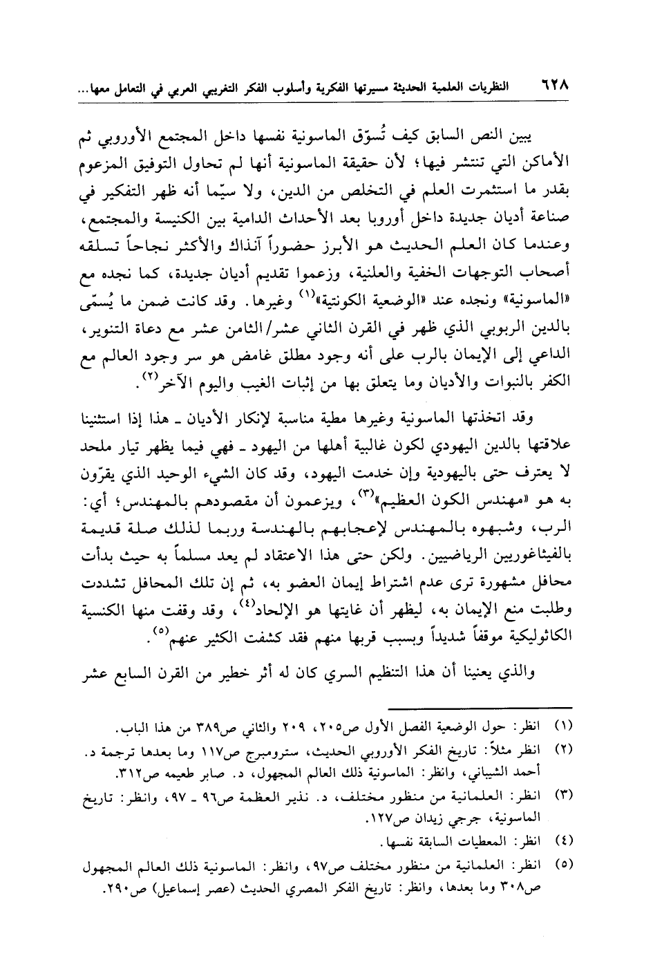 (¬2) انظر مثلًا: تاريخ الفكر الأوروبي الحديث، سترومبرج ص 117 وما بعدها ترجمة د. أحمد الشيباني، وانظر: الماسونية ذلك العالم المجهول، د. صابر طعيمه ص 312.